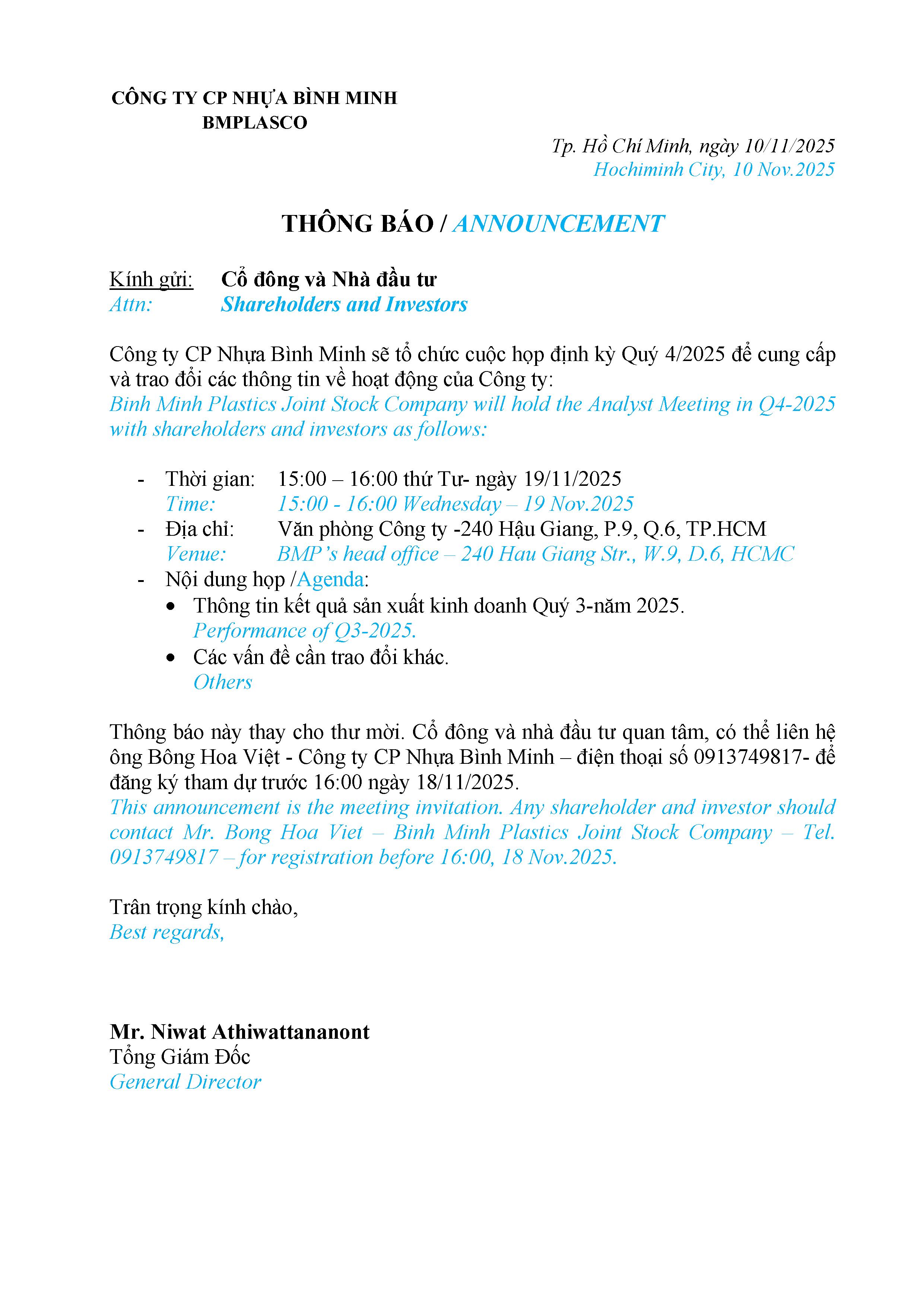 Tên giao dịchCTCP Nhựa Bình Minh (HOSE: BMP)