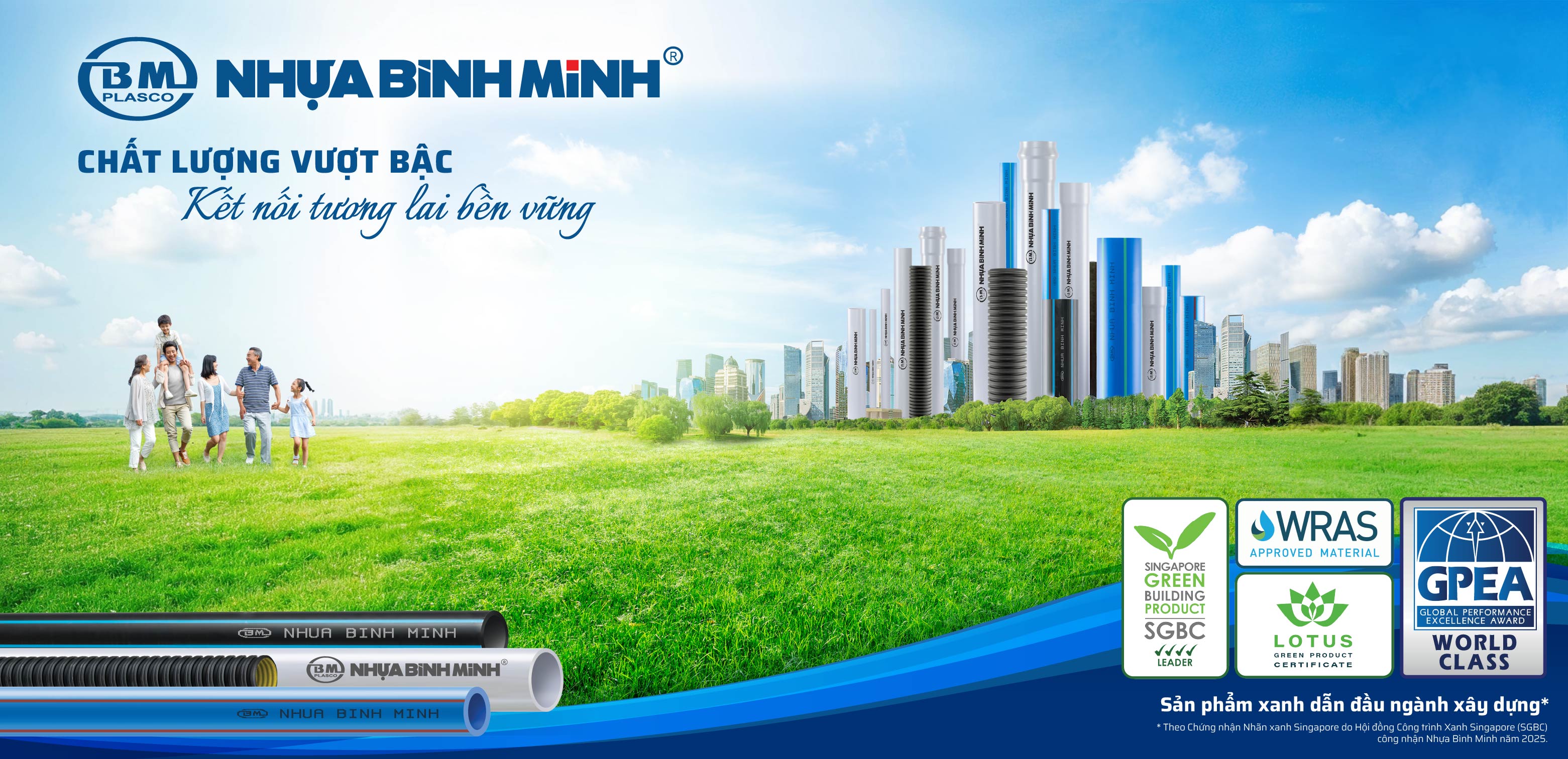 Binh Minh Plastic Joint Stock Company was established in 1977, is a leading enterprise in the plastic construction materials industry in Vietnam. Currently, the company owns 4 modern factories located in Ho Chi Minh City, Tay Ninh and Hung Yen, specializing in providing pipes and plastic pipe fittings that meet national and international standards. All Binh Minh Plastic products use a completely new system of additives that do not contain heavy metals, ensuring safety for users' health and being environmentally friendly. In particular, Binh Minh Plastic's PVC-U, PP-R pipes and fittings have been certified by the Singapore Green Building Council (SGBC) as the highest level SGBP (Singapore Green Building Product) - Leader, safe for drinking water.