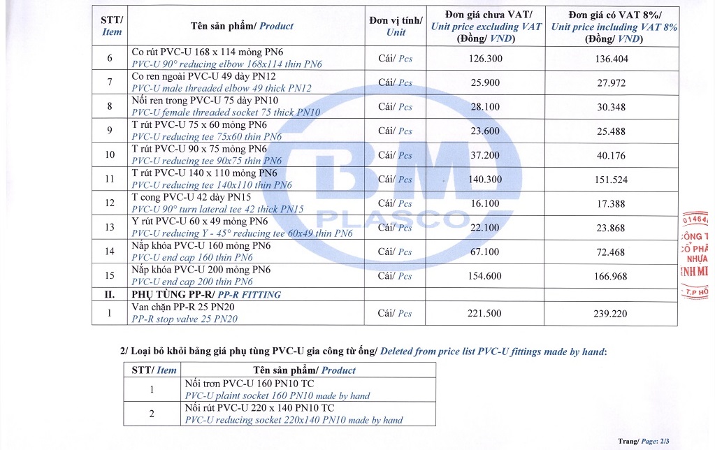 Re: Packaging Update for Binh Minh Plastics Products