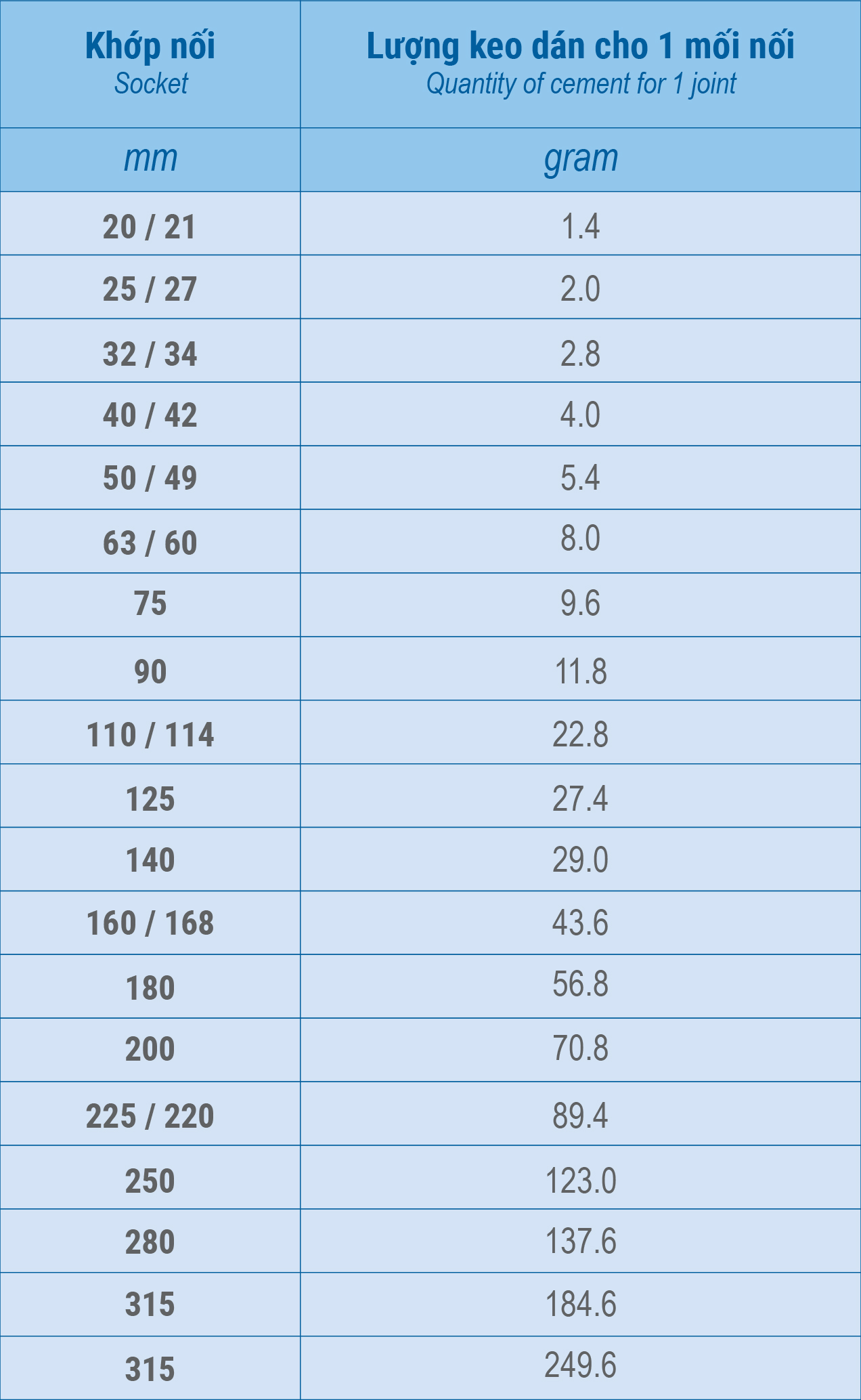 Do not apply solvent cement excessively, the redundant cement would destroy the joint.