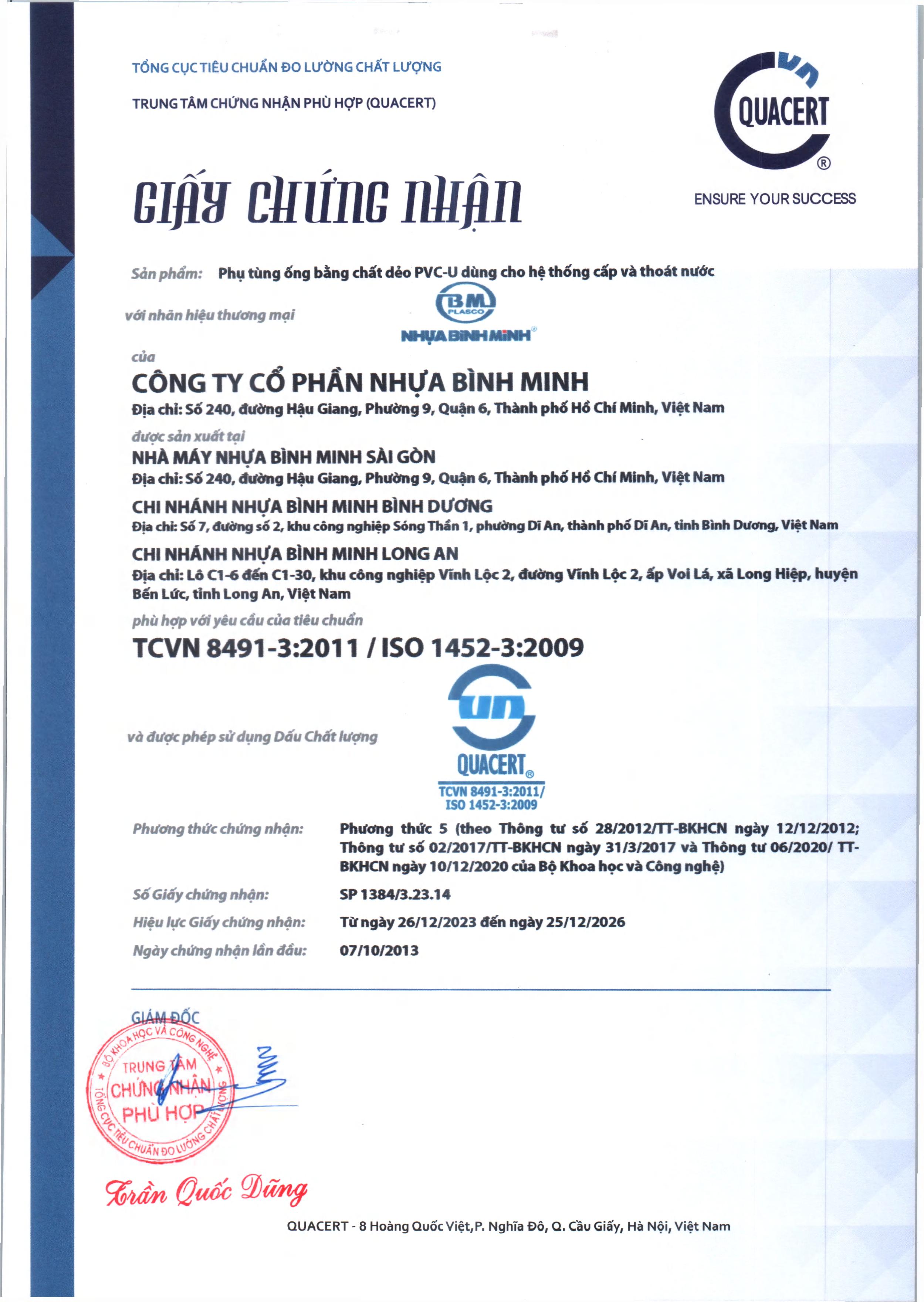 Nhiệt độ hóa mềm vicat tối thiểu (ống): 80  °C