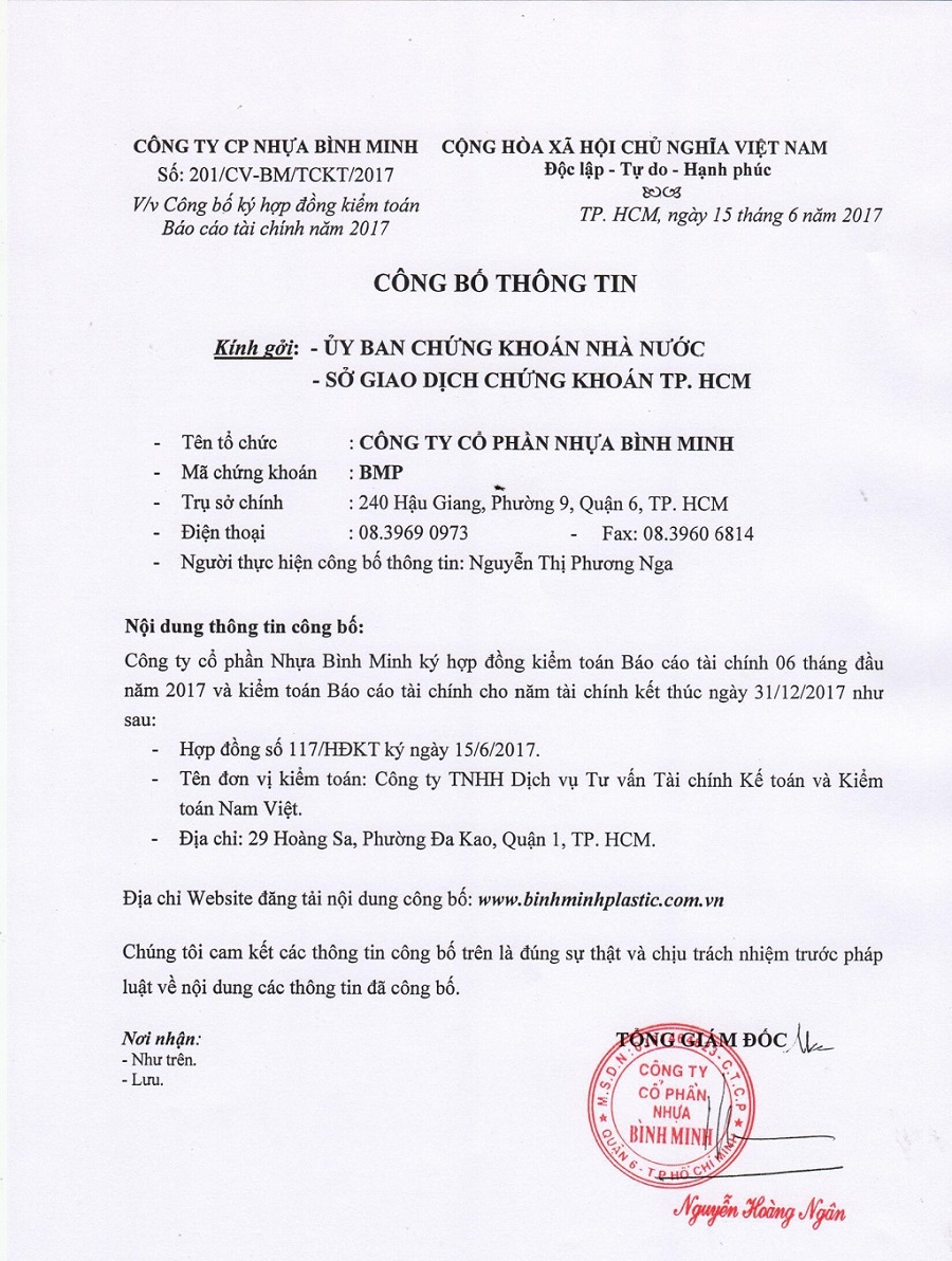 Signing of the Audit Contract for the Financial Statements for the First Half of 2017
