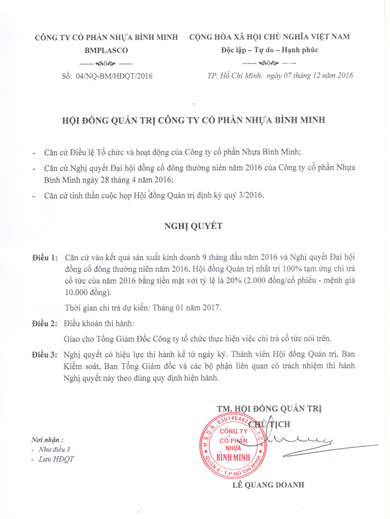 RESOLUTION OF THE BOARD OF DIRECTORS – ON THE APPOINTMENT OF MS. DANG THI THU HA AS A MEMBER OF THE BOARD OF DIRECTORS