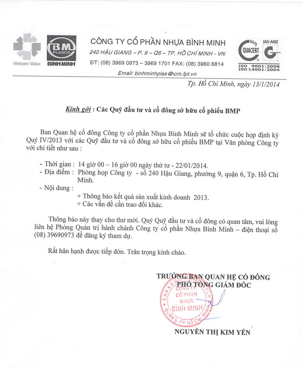 Official Letter from Ho Chi Minh City Tax Department dated December 21, 2013