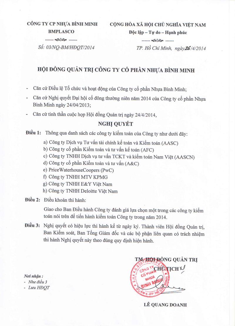 Resolution of the Board of Directors on the Approval of the List of Auditing Firms