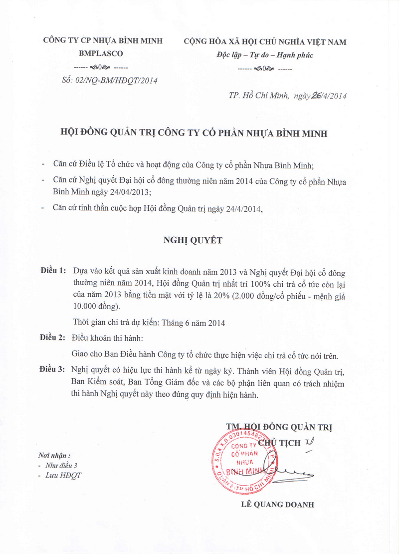 Resolution of the Board of Directors on the Second Dividend Payment for 2013