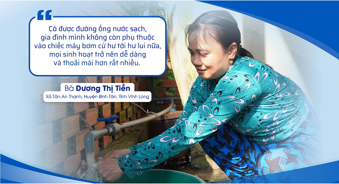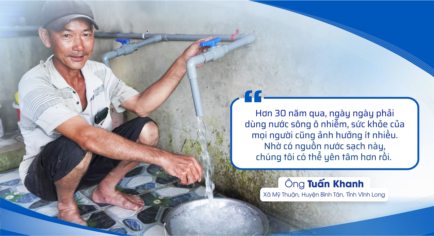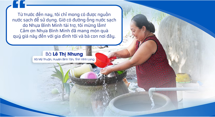 Binh Minh Plastic has brought more joy and happiness to the people of Vĩnh Long with the inauguration of a 5,100-meter clean water pipeline in the two communes of Mỹ Thuận and Tân An Thạnh, which began construction on July 9, 2024.