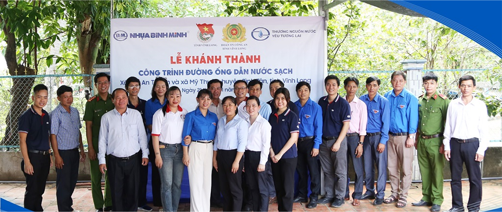 The inauguration ceremony was attended by Mr. Mai Thanh Hồ – Standing Deputy Secretary of the Vĩnh Long Provincial Youth Union, representatives from the Youth Union of the Vĩnh Long Police, leaders of Bình Tân District People’s Committee, commune leaders, a large number of youth volunteers, and representatives from Binh Minh Plastic from Bình Sài Gòn Factory, Bình Minh Long An, Bình Minh Bình Dương, the Research & Development Department, Marketing Department, along with local residents of Mỹ Thuận and Tân An Thạnh communes.