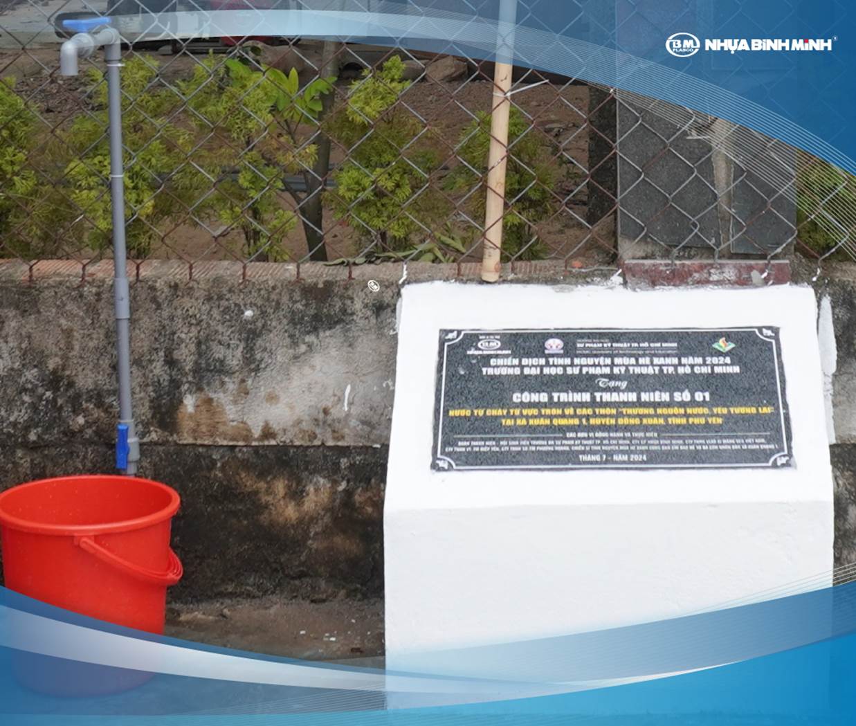 The summer of 2024 witnessed an important collaborative effort between Binh Minh Plastics Joint Stock Company, Representative of Phuong Hoang Distributor, Hiep Yen store, representative of SCG Home and organizations, including Xuan Quang 1 Commune People's Committee (Dong Xuan district), Phu Yen Provincial Youth Union, Ho Chi Minh City Youth Union, Ho Chi Minh City University of Technology and Education Youth Union, Phu Yen Provincial Military Command, and local people. The project carried a meaningful mission: Providing water for people in drought-stricken areas.