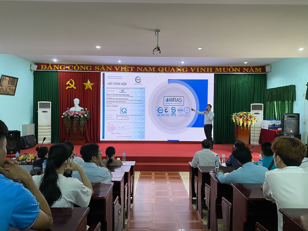 On May 18, Binh Minh Plastics Joint Stock Company coordinated with Mien Tay Construction University (MTU) to successfully organize the Specialized Seminar on Water Supply, Drainage & Environment for students of the Faculty of Urban Infrastructure Engineering.