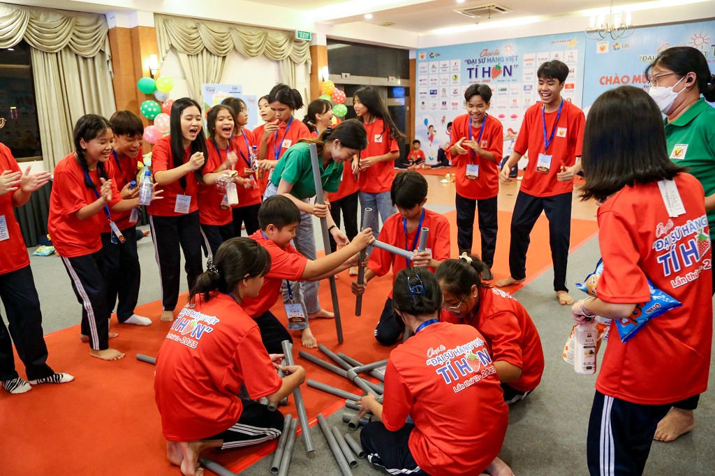 Từ ngày 01 – 04/08/2023, tại TP. HCM, 100 trại sinh có hoàn cảnh khó khăn trong độ tuổi từ 12-15 đến từ các Tỉnh/TP như Trà Vinh, Sóc Trăng, Bạc Liêu, Bến Tre, TP. HCM đã hân hoan góp mặt trong chương trình “Trại hè Đại sứ hàng Việt tí hon lần 12 năm 2023”.