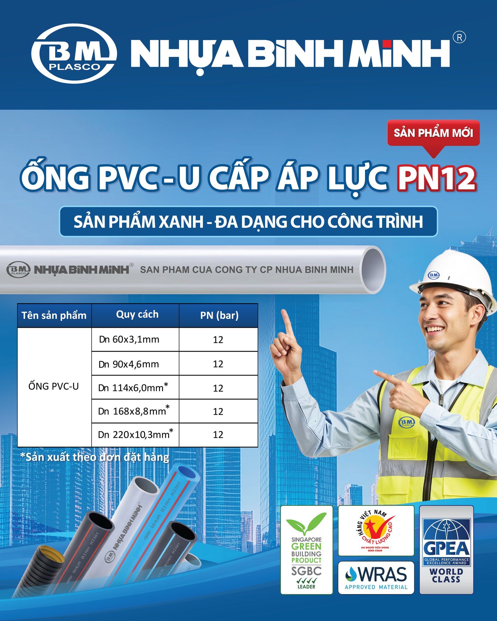 NHỰA BÌNH MINH RA MẮT ỐNG PVC-U CẤP ÁP LỰC PN12