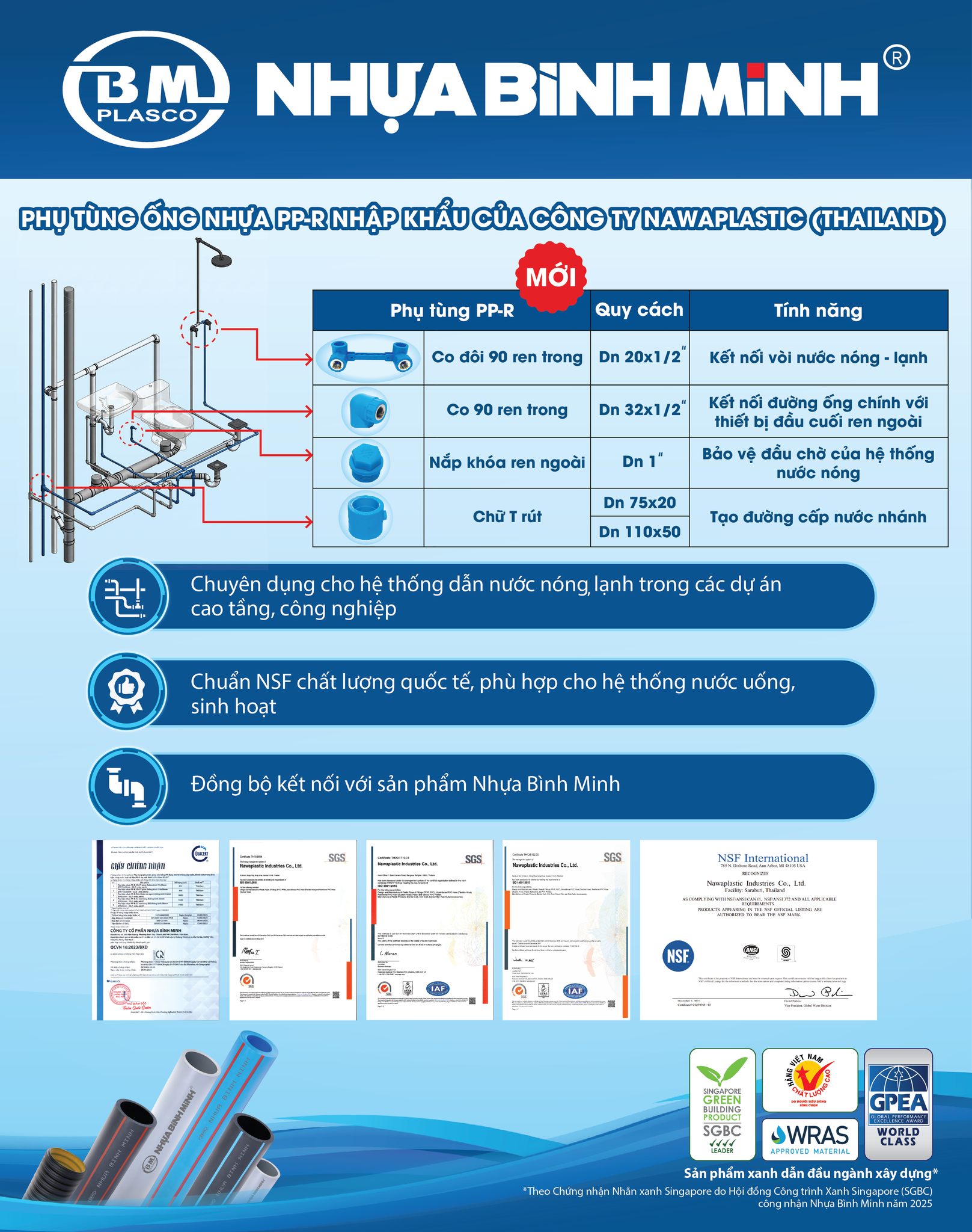 NHỰA BÌNH MINH RA MẮT PHỤ TÙNG PP-R NHẬP KHẨU