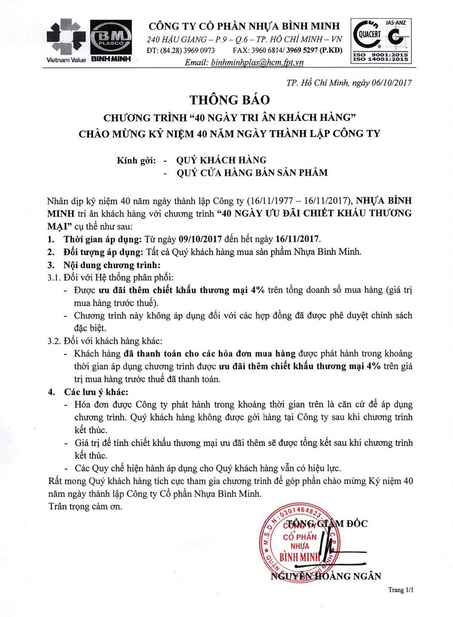 1. Chương trình khuyến mại sản phẩm uPVC khu vực phía Bắc 2. Chương trình khuyến mại sản phẩm HDPE khu vực phía Bắc