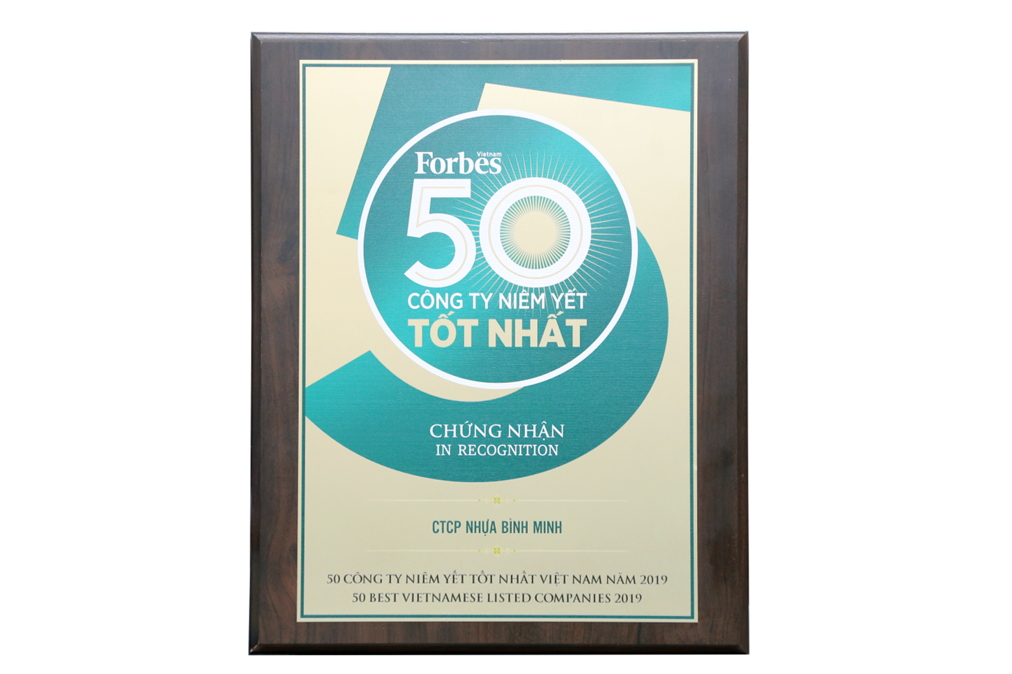 Ngày 15/8/2019, tại Trung tâm Hội nghị Sự kiện GEM center Công ty Cổ phần Nhựa Bình Minh đã được vinh danh Top 50 Công ty niêm yết tốt nhất Việt Nam 2019 do Forbes Việt Nam xếp hạng lựa chọn trong số các công ty có kết quả kinh doanh tốt nhất, đang niêm yết tại sở Giao dịch TP.HCM (HSX) và sở Giao dịch Hà Nội (HNX). Nhựa Bình Minh được Forbes Việt Nam đánh giá là doanh nghiệp đầu ngành, xác lập được lợi thế cạnh tranh trong ngành nhựa vật liệu xây dựng Việt Nam.