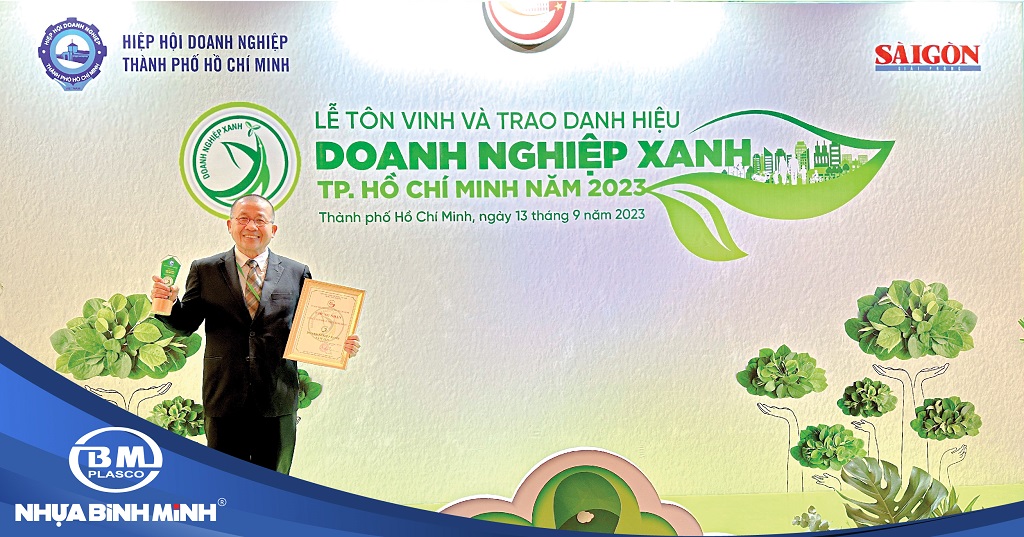 Chiều ngày 13/09/2023, Nhựa Bình Minh vinh dự đạt giải “ Doanh nghiệp xanh TP.HCM” do Hiệp hội Doanh nghiệp TPHCM (HUBA) phối hợp Báo Sài Gòn Giải Phóng (Báo SGGP) lần đầu tổ chức, dưới sự chỉ đạo của Ủy Ban Nhân Dân TP.HCM (UBND TP.HCM).
