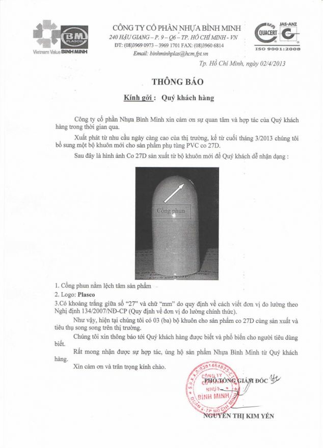 Công ty cổ phần Nhựa Bình Minh xin cảm ơn sự quan tâm và hợp tác của Quý khách trong thời gian qua.