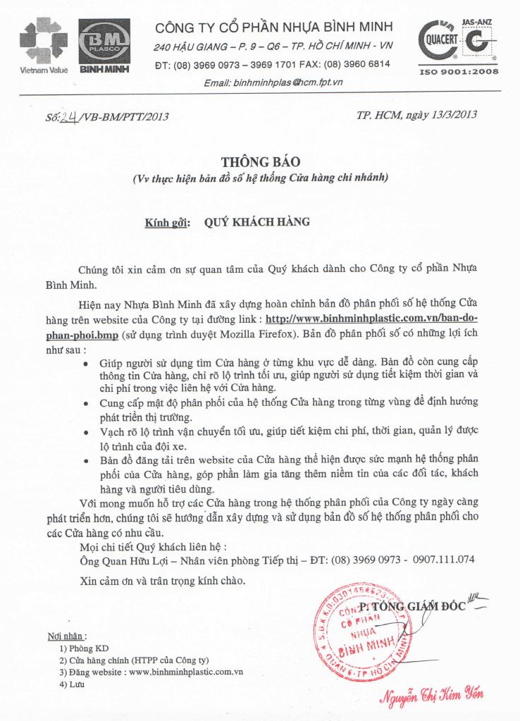 V/v thực hiện bản đồ số hệ thống Cửa hàng chi nhánh
